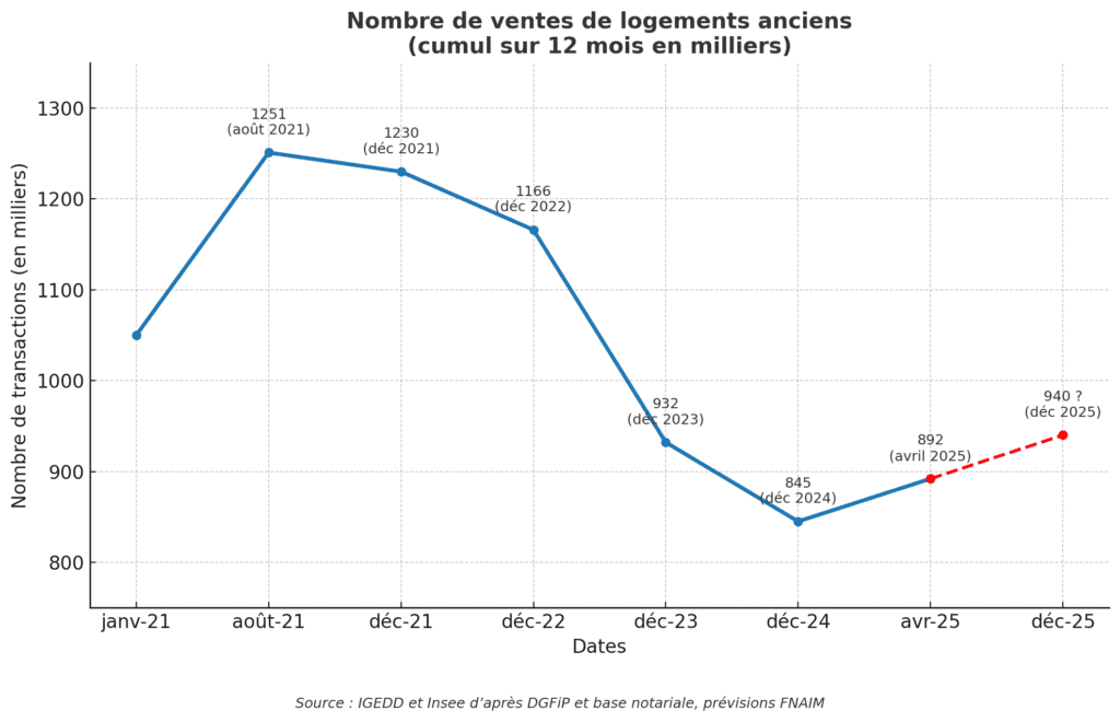 Côté ancien, le marché montre une vraie respiration. Après un creux à 845 000 transactions fin 2024, la FNAIM prévoit 940 000 ventes d’ici fin 2025. Soit un rebond de +10 à +15 % en un an. Les acquéreurs reprennent confiance, encouragés par des prix qui se normalisent.